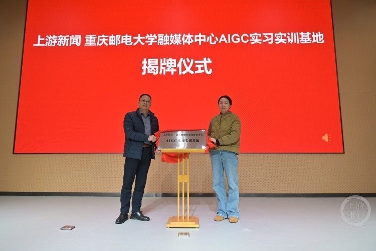 会上,由上游新闻和重庆邮电大学融媒体中心共同打造的“AIGC实习实训基地”认真揭牌,两边将成立常态化合营,强化媒体资源,共同培养东谈主才。